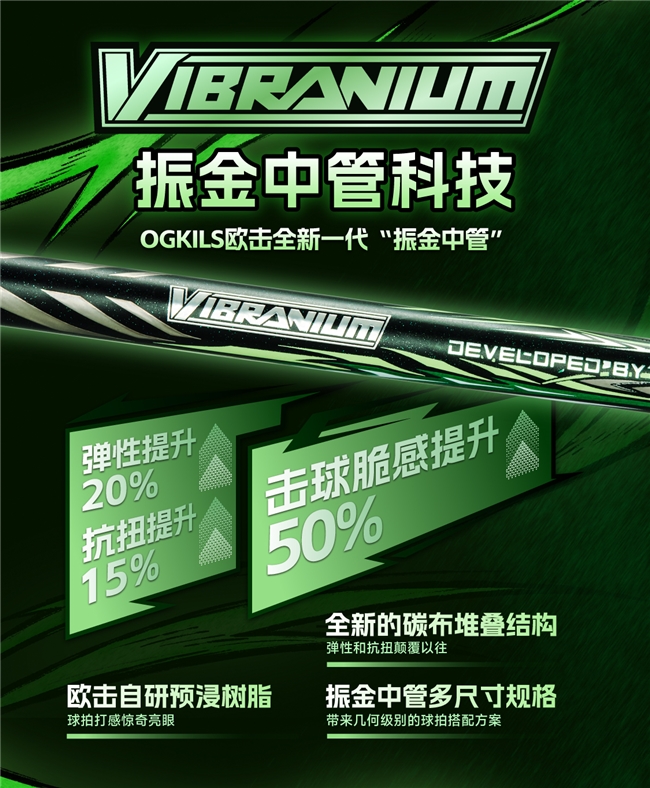欧击独家振金中管科技。通过全新碳布堆叠结构与独家预浸树脂秘方,实现中管弹性和抗扭性能的颠覆。