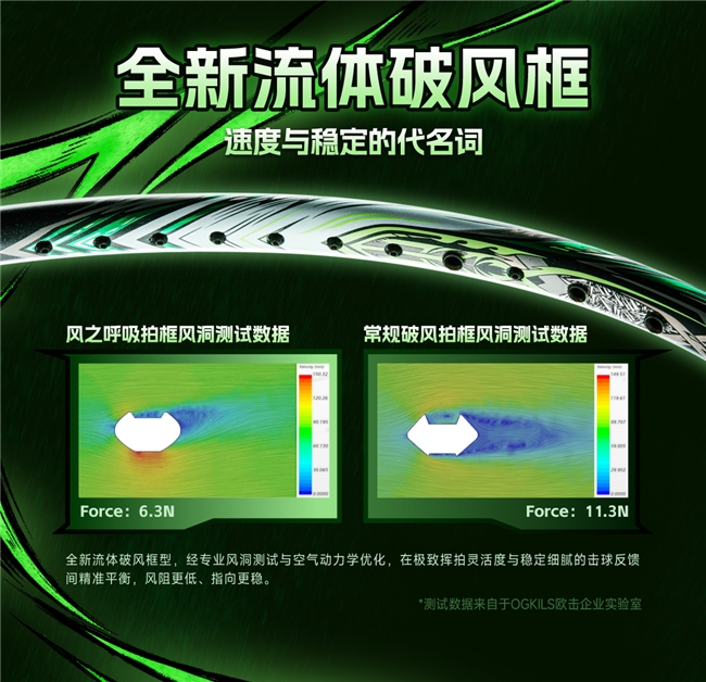 欧击将这一尖端材质精准应用于风之呼吸的拍框补强。这种应用不仅提升了球拍的瞬时击球弹性反馈,更凭借其优异的刚性,大幅缩短了球拍形变后的复位时间,为选手的连贯击球争取到了宝贵的毫秒级优势,真正做到了“快人一步”。